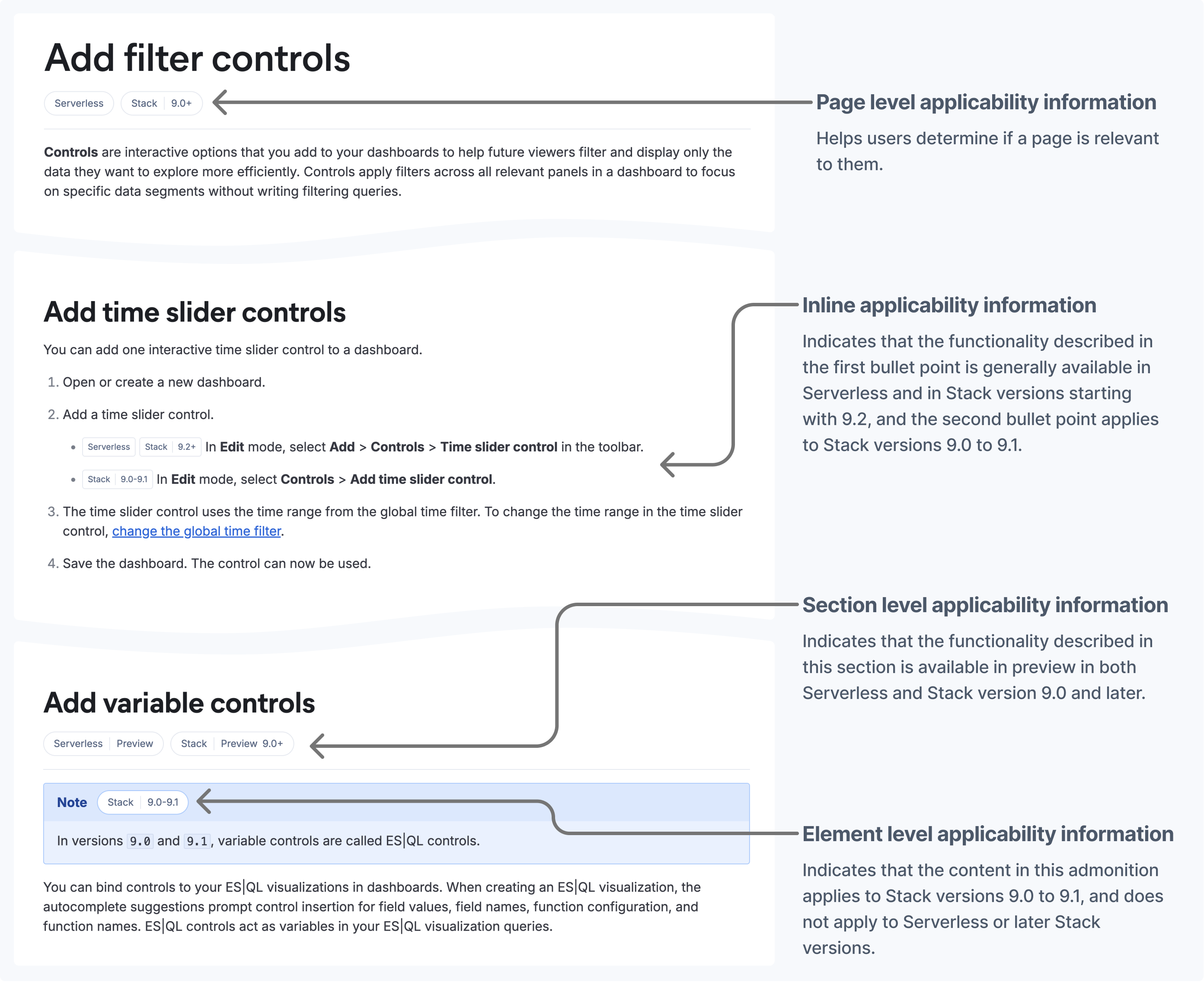 As new minor versions are released, we want users to be able to distinguish which content applies to their own ecosystem and product versions without having to switch between different versions of a page.