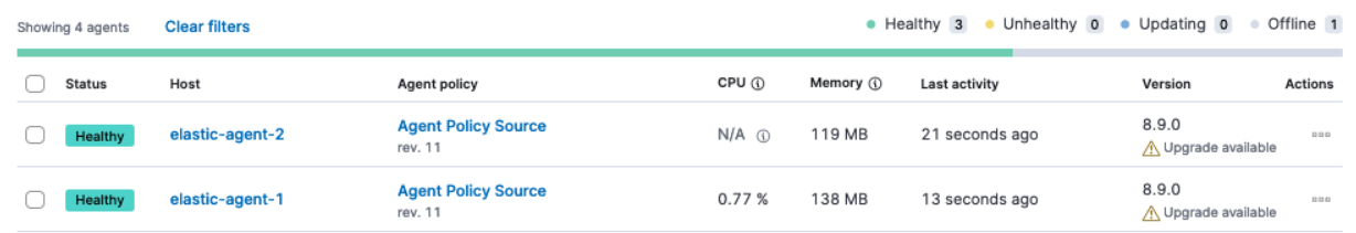 The agent on each host will now check into the new Fleet Server and appear in the new target cluster. In the source cluster, the agents will go offline as they won’t be sending any check-ins.