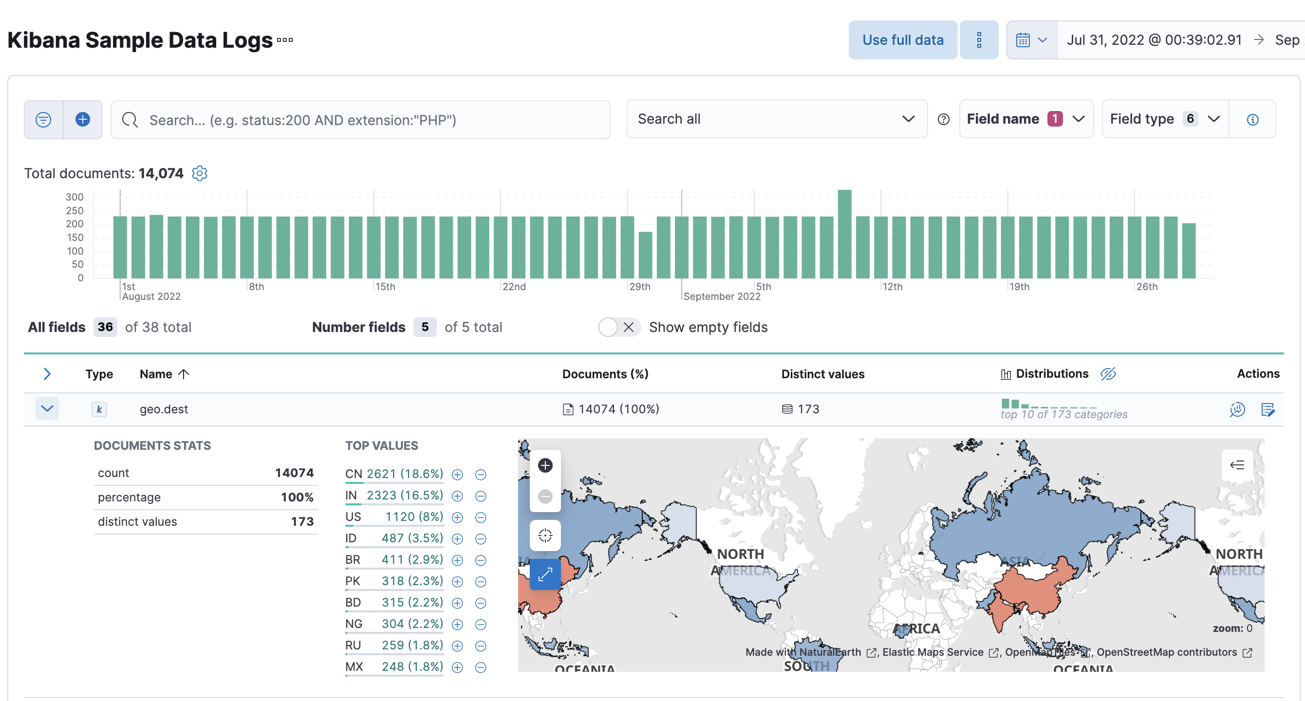 If you want to view choropleth maps in Data Visualizer or anomaly detection job results, you must have fields that contain valid vector layers (such as country codes or postal codes).