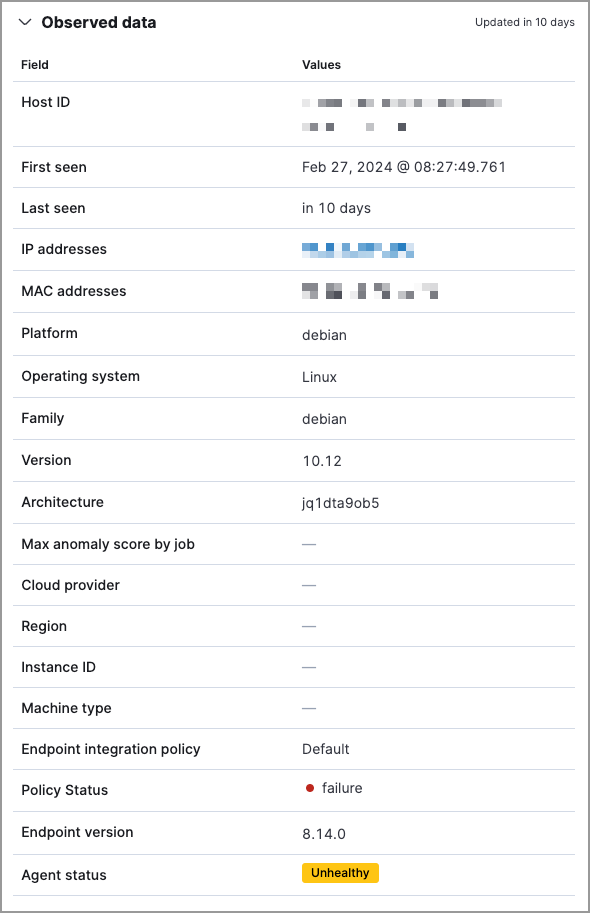 This section displays details such as the entity ID, when the entity was first and last seen, and the associated IP addresses and operating system.