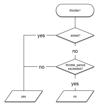 Watcher also supports acknowledgement-based throttling. You can acknowledge a watch using the ack watch API to prevent the watch actions from being executed again while the watch condition remains true. This essentially tells Watcher "I received the notification and I’m handling it, do not notify me about this error again". An acknowledged watch action remains in the acked state until the watch’s condition evaluates to false. When that happens, the action’s state changes to awaits_successful_execution.