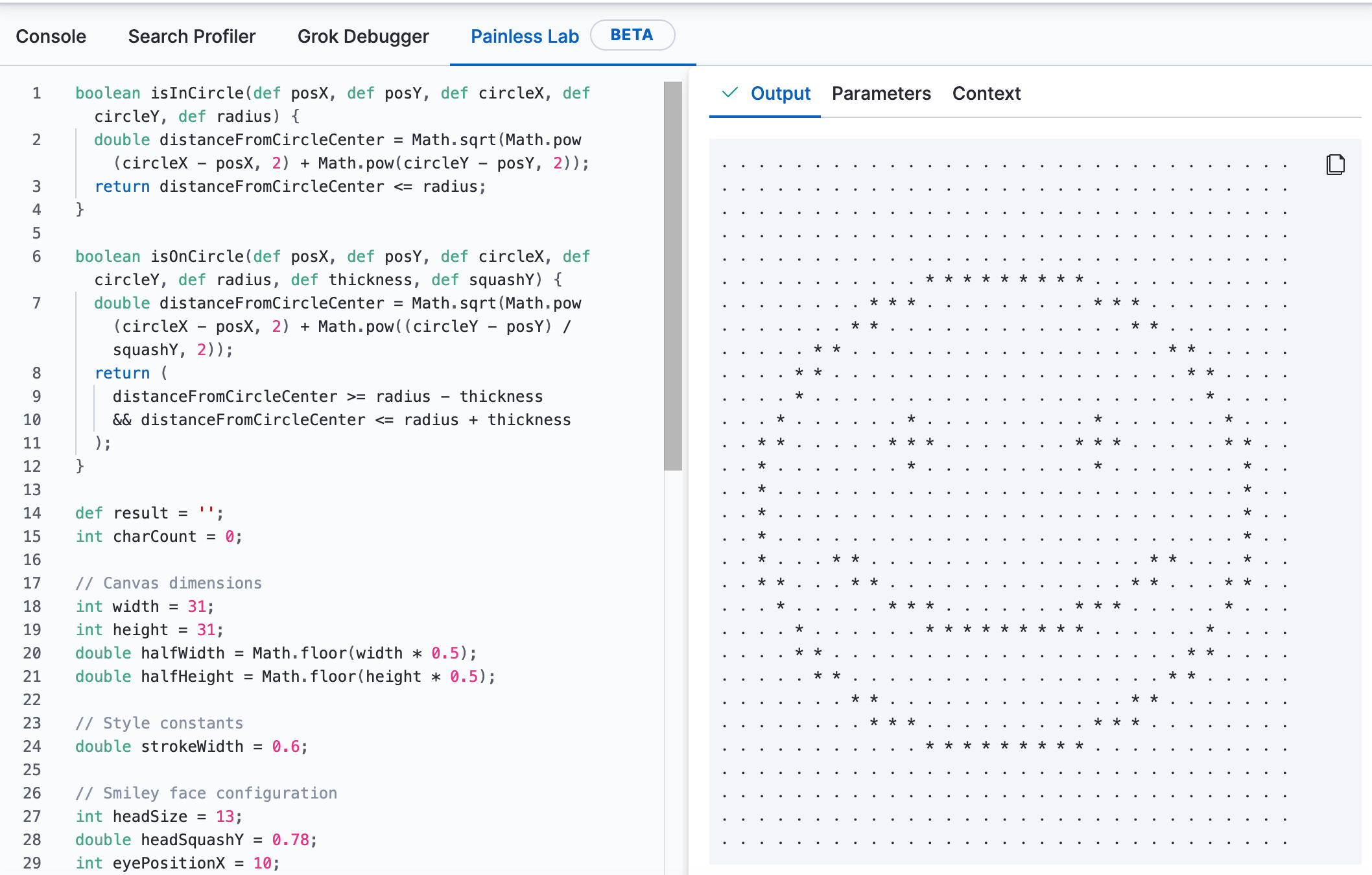The Painless Lab is an interactive code editor that lets you test and debug Painless scripts in real-time. You can use the Painless scripting language to create Kibana runtime fields, process reindexed data, define complex Watcher conditions, and work with data in other contexts.