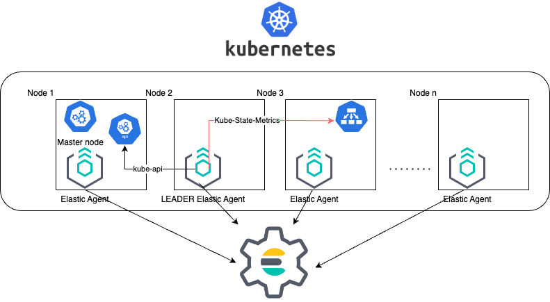 Additionally, by default one agent is elected as leader (for more information visit Kubernetes LeaderElection Provider). The Elastic Agent Pod which holds the leadership lock is responsible for collecting the cluster-wide metrics in addition to its node’s metrics.