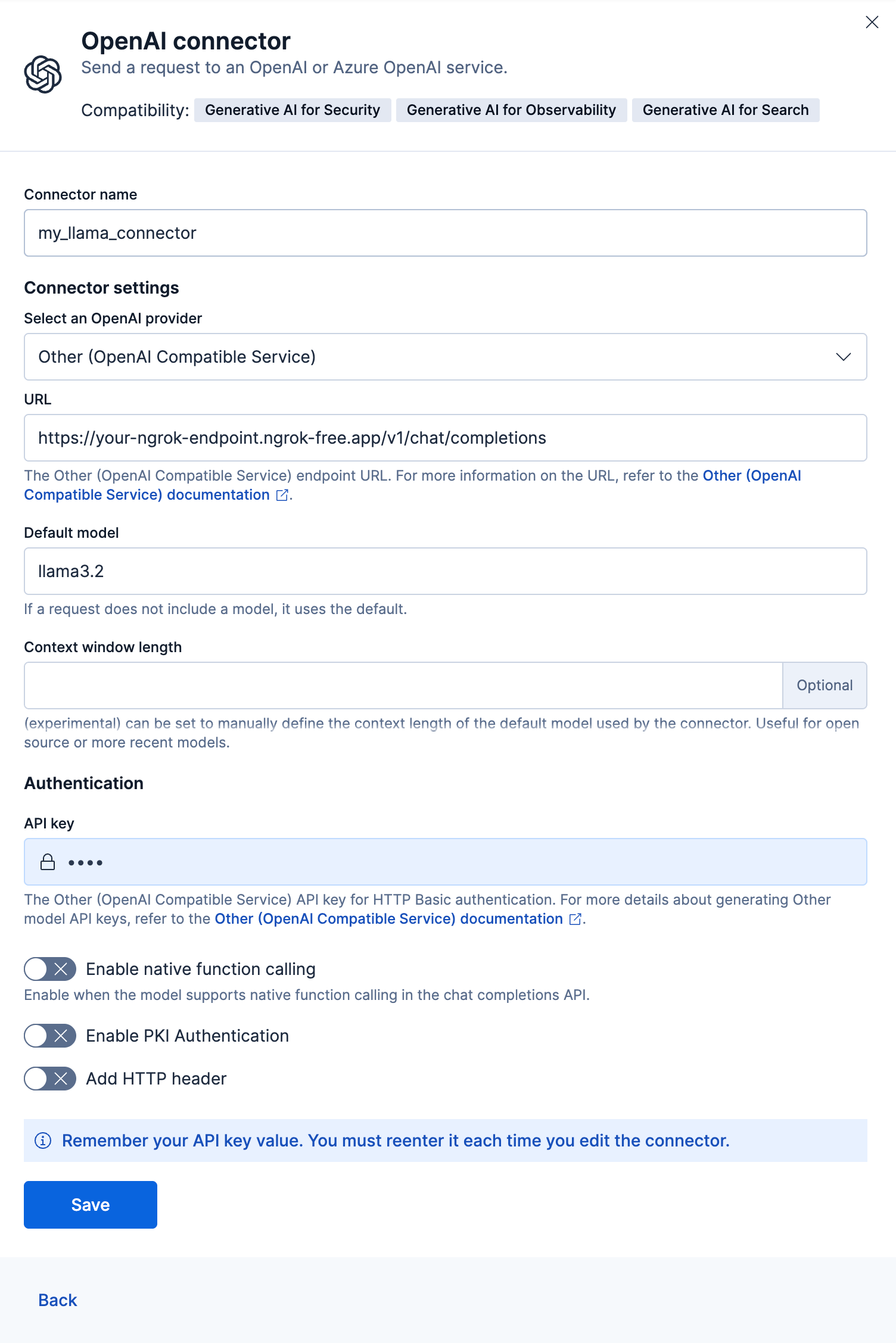 - Under Connector settings, select Other (OpenAI Compatible Service) as the OpenAI provider.