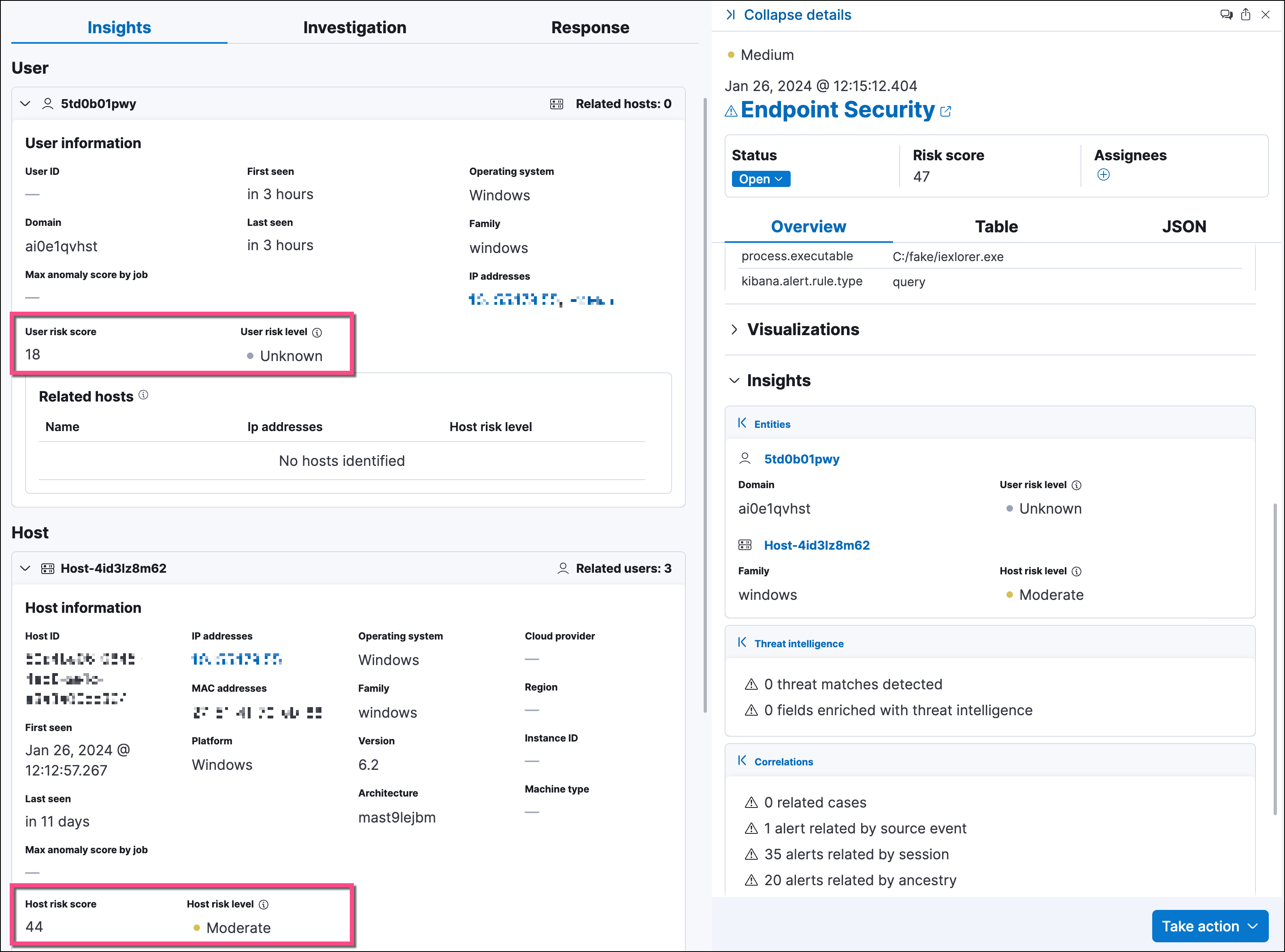 - Host, user, and service risk levels