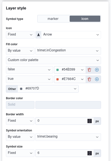 Add a layer that uses attributes in the data to set the style and orientation of the vehicles. You’ll see the direction vehicles are headed and what traffic is like.