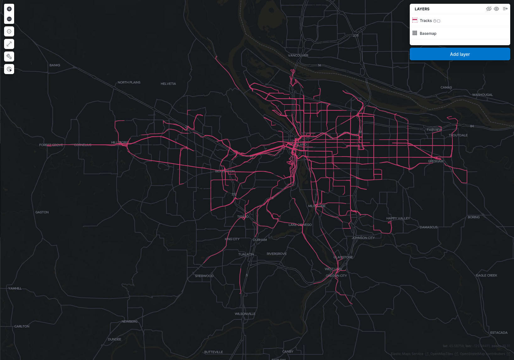 At this point, you have a map with lines that represent the routes of the TriMet vehicles as they move around the city.