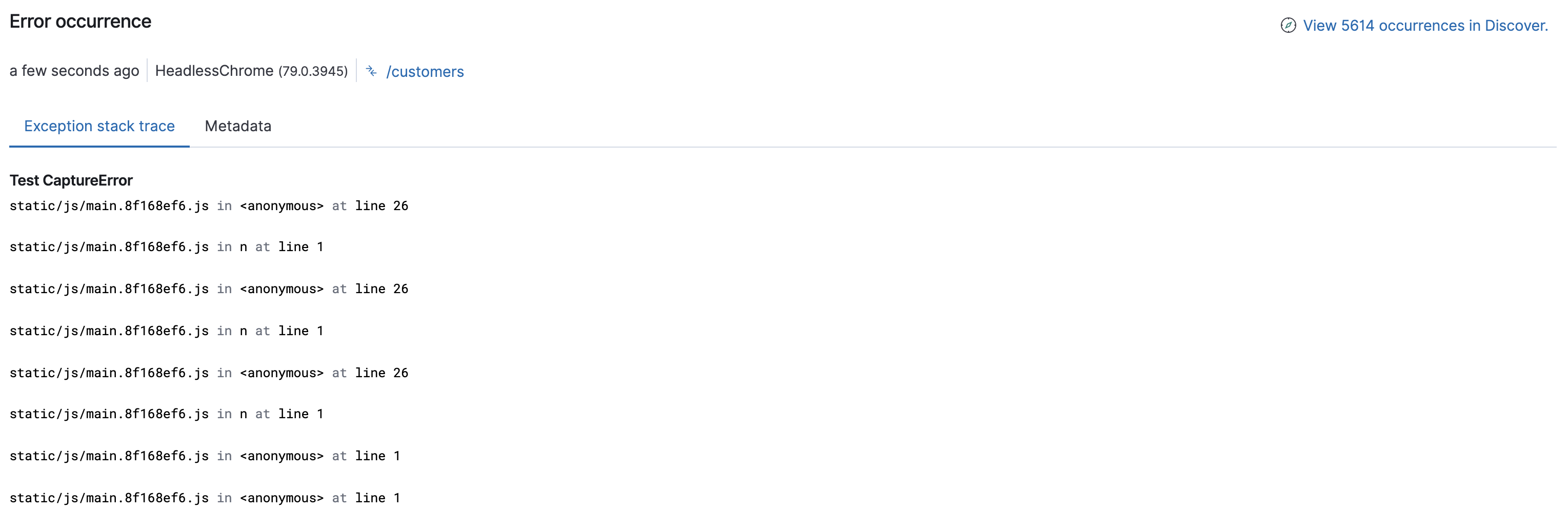 Here’s an example of an exception stack trace in the Applications UI when using minified code. As you can see, it’s not very helpful.