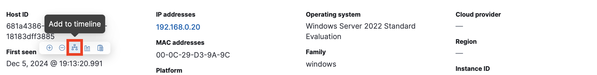 In the Anomalies table, you can add entity details, like the entity or any associated influencers, into Timeline.