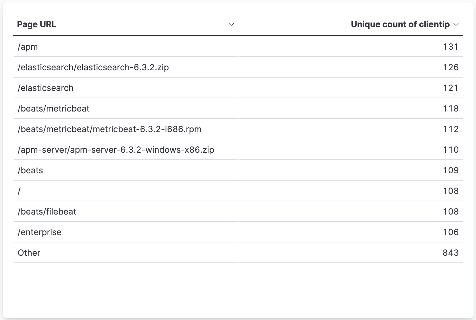 Metric visualization of the clientip field