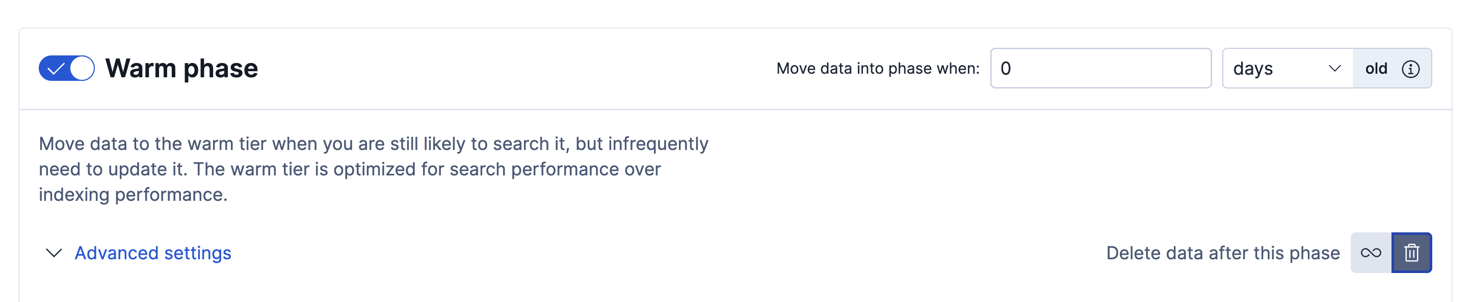 In the warm phase, click the trash icon to enable the delete phase.