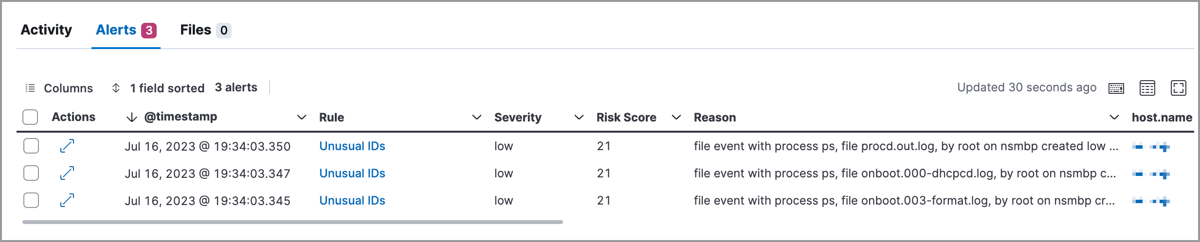 - Associated hosts: Total number of unique hosts that are represented in the attached alerts