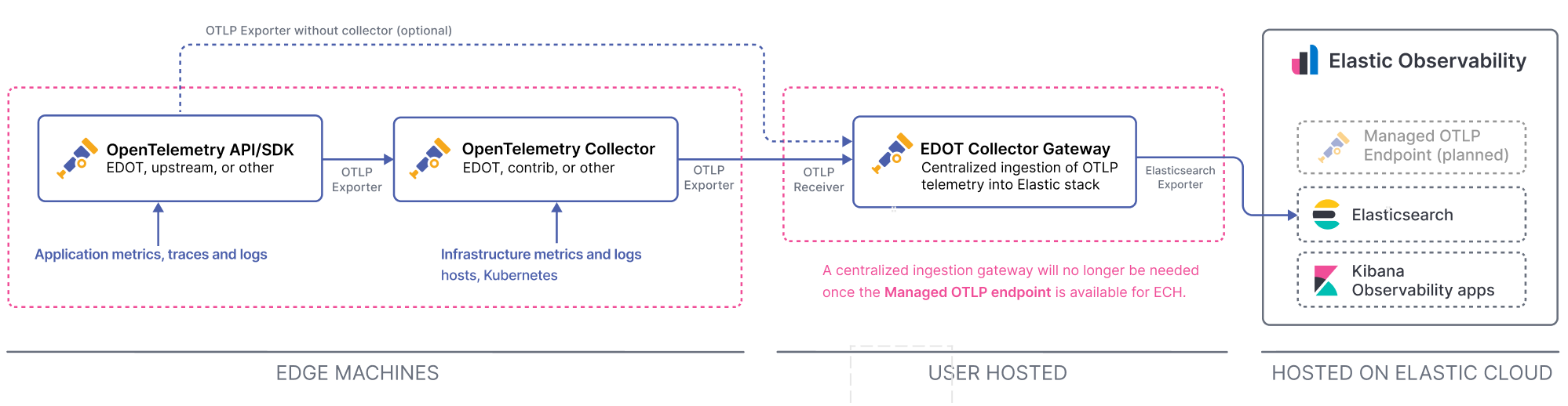 Elastic offers several distributions of OpenTelemetry. Each Elastic Distribution of OpenTelemetry is a customized version of an OpenTelemetry language SDK and the OpenTelemetry Collector, ready to send data to the Managed OTLP endpoint, APM Server, or directly to Elasticsearch.