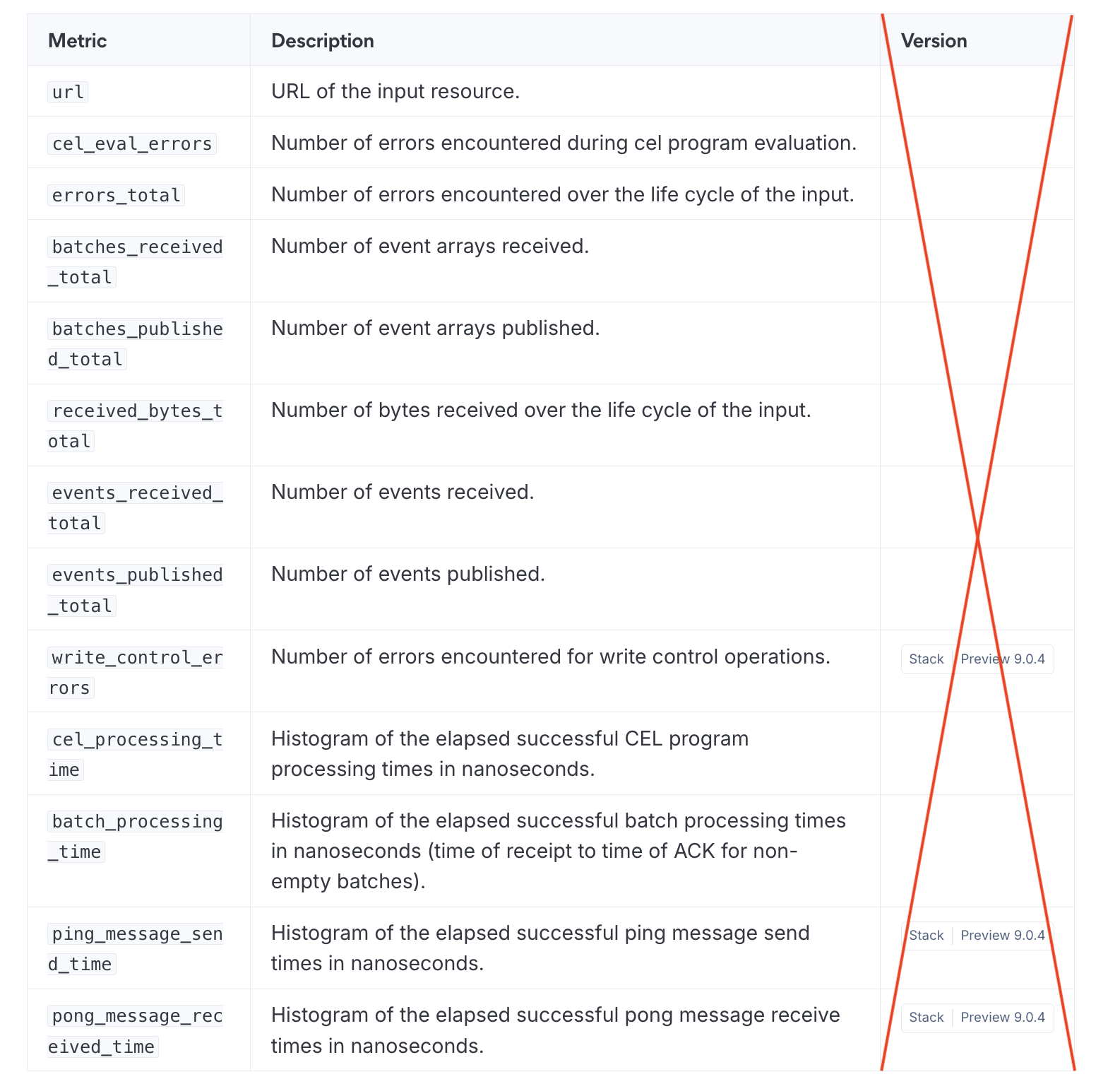 In some cases it might be appropriate to add column dedicated to applicability, but you should avoid adding specific Markdown real estate to the page layout and causing existing tables with content from long before the base version, for example Elastic Stack 9.0.0, look incomplete.