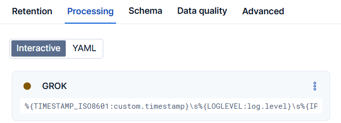 - Grok: Extracts fields from unstructured log messages using predefined or custom patterns, supports multiple match attempts in sequence, and can automatically generate patterns with an LLM connector.