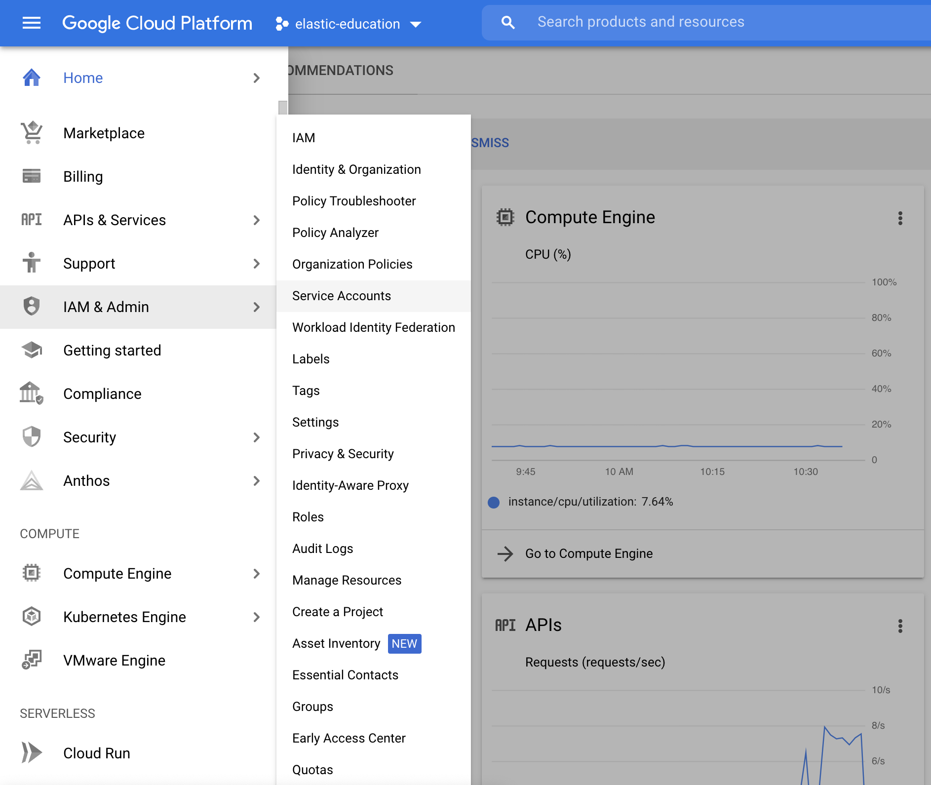 Google Cloud Platform implements service accounts as a way to access APIs securely. To monitor GCP with Elastic, you will need a service account. The easiest way is to use a predefined service account that GCP creates automatically. Alternatively, you can create a new service account. This tutorial creates a new one.