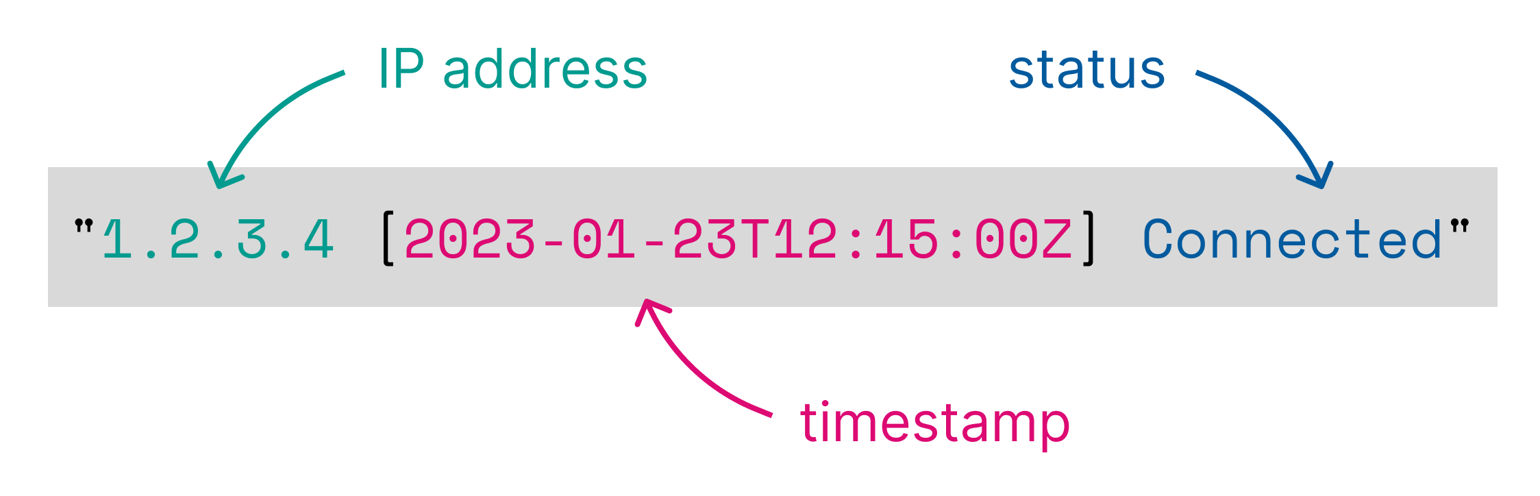 ROW a = "1.2.3.4 [2023-01-23T12:15:00.000Z] Connected"