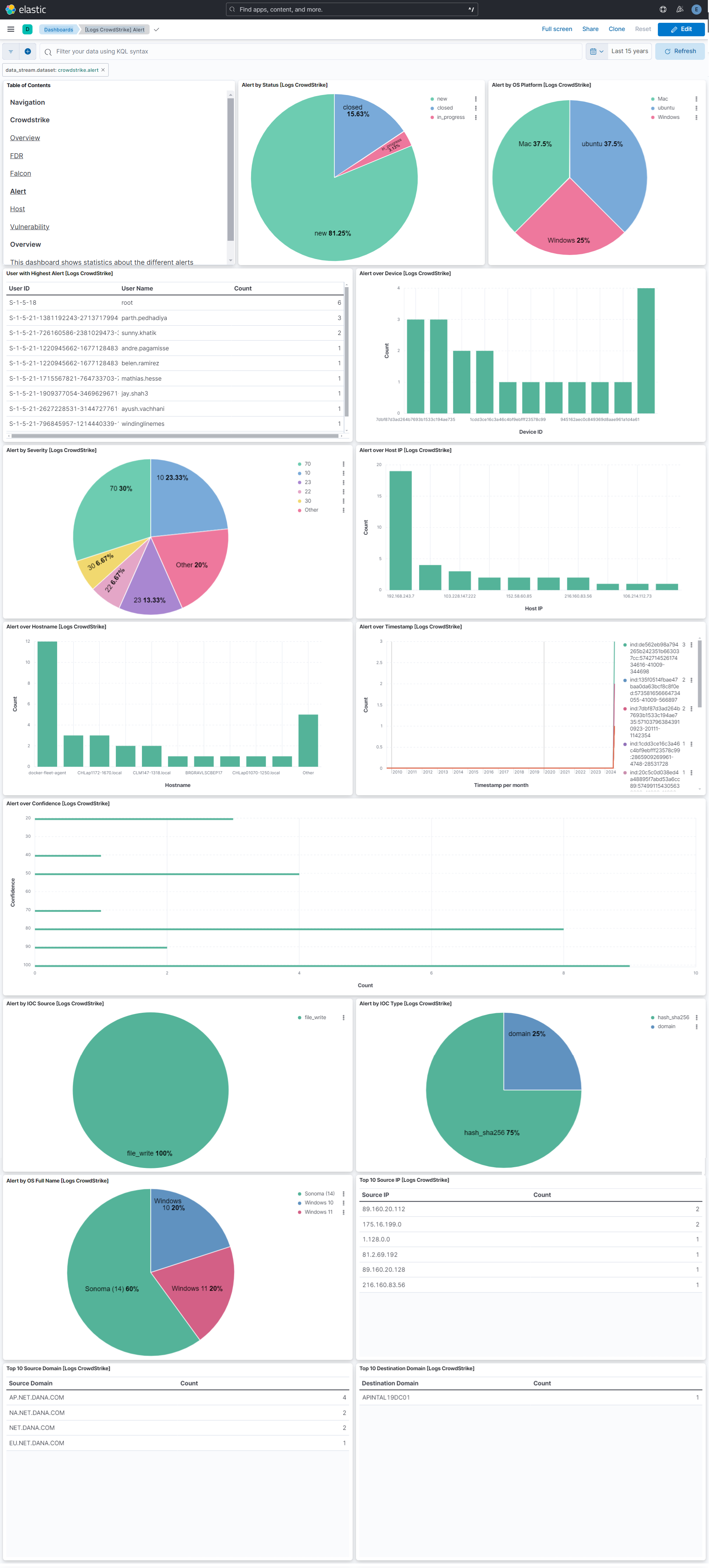 • alert dataset: It is typically used to retrieve detailed information about unified alerts generated by the CrowdStrike Falcon platform, via Falcon Intelligence Alert API - /alerts/combined/alerts/v1.