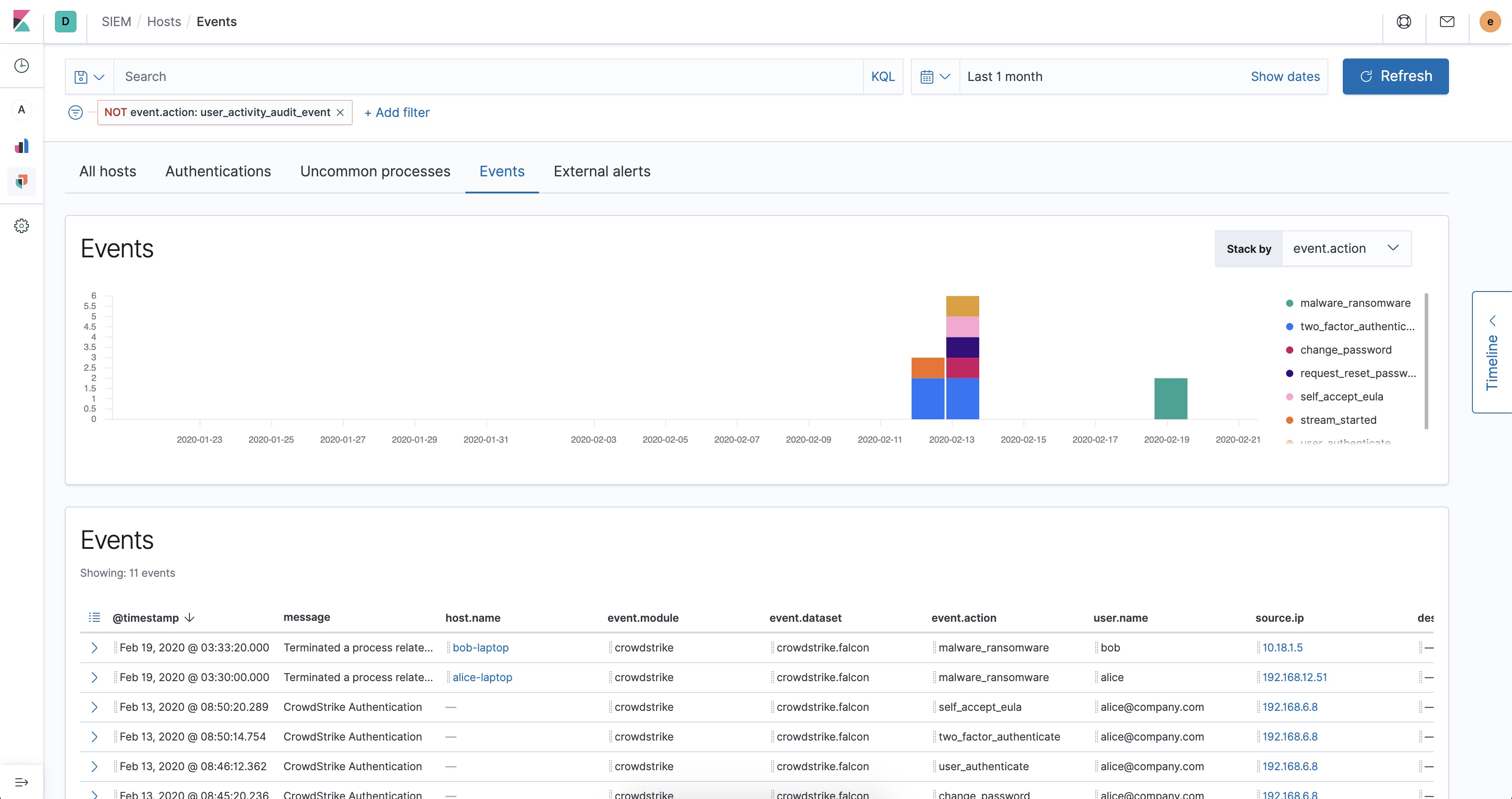 • falcon dataset: consists of endpoint data and Falcon platform audit data forwarded from Falcon SIEM Connector.
