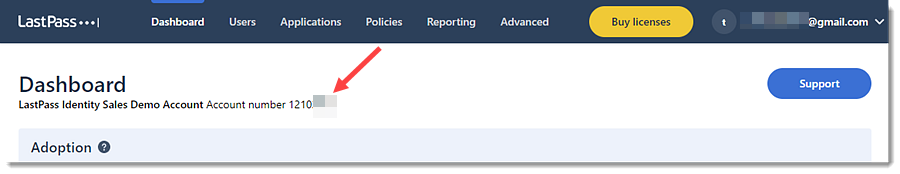 • On the Dashboard tab, the Account Number(CID) is located at the top of the page. it is preceded by the words Account number. LastPass Account Number