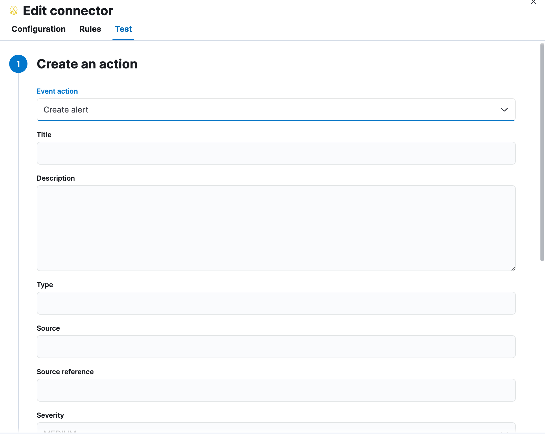 You can test connectors for creating a case or an alert with the run connector API or as you're creating or editing the connector in Kibana. For example: